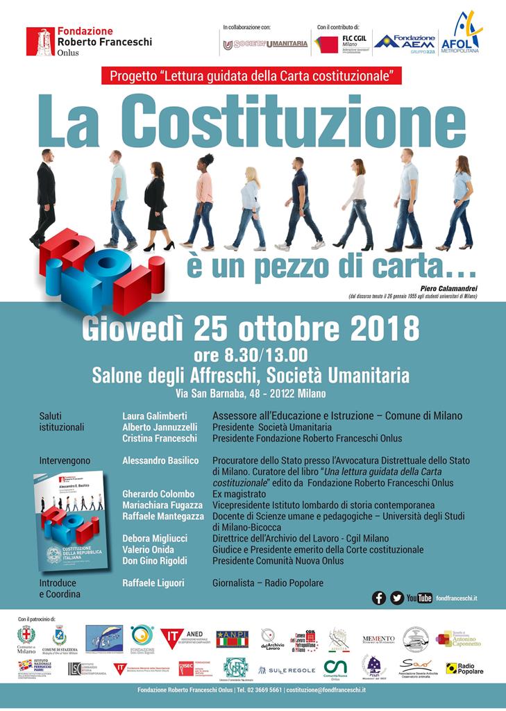 Il libro “Una lettura guidata della Carta costituzionale” a cura di Alessandro Basilico con la collaborazione di Gherardo Colombo ha l’obiettivo di avvicinare i ragazzi alle regole fondamentali che governano il Paese in cui vivono e fornire agli insegnanti uno strumento flessibile per la didattica. Il libro, pubblicato dalla Fondazione Roberto Franceschi Onlus, aspira a far conoscere la nostra Costituzione attraverso commenti ai singoli articoli, che spiegano come queste norme sono state o possono essere interpretate e applicate, e domande, che raccontano un problema concreto e invitano il lettore a risolverlo, eventualmente con l’aiuto di un insegnante, alla luce degli articoli commentati (trattandosi per lo più di casi reali, vi saranno anche i riferimenti alle sentenze della Corte costituzionale che rispondono alla domanda).